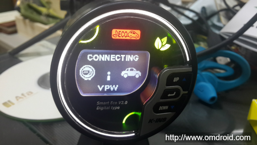 흠.. 에코게이지의 화면에서는 무언가 ECU를 검색하면서 접속하려는 시도를 하고 있는듯 보입니다. 하지만 시간이 꽤 흘러도 실제로 접속 되었다는 메시지가 나오지 않네요. 계속 Searching 중인듯 보입니다.