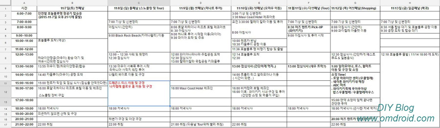 위의 일정은 전에 하와이 여행시에 작성을 해놓은 겁니다. 관련하여 제 블로그 다른 글에 포스팅 되어 있으니 아래 링크 참고하셔도 될꺼 같아요.