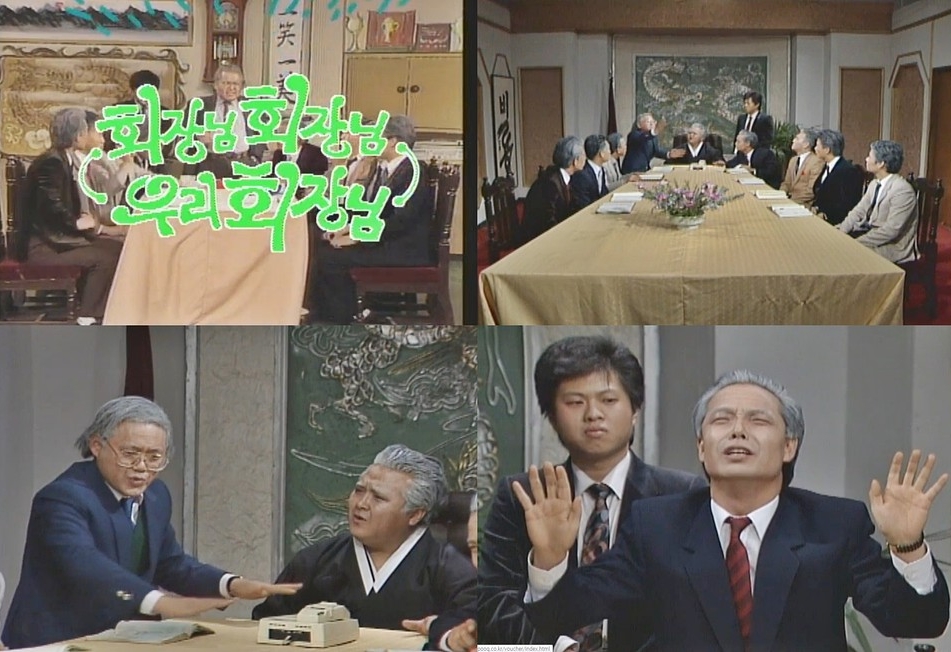 사내 정치를 신랄하게 풍자한 개그 프로인 “유머일번지”의 회장님~우리 회장님 코너의 모습
